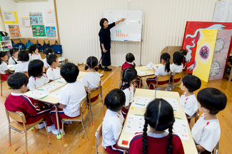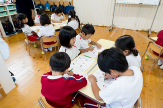 この時期の幼児のお子様方は視覚、聴覚をはじめ心身ともに急成長をしています。しっかりと、読み・書き・聴く・話せる英語学習にとりくんでいきたいと思います。さらに希望されるお子様には、児童英語検定試験を園内で受験できるよう指導させて頂きたいと思います。