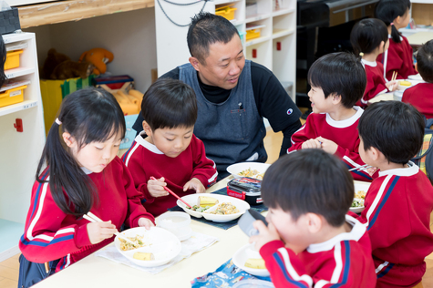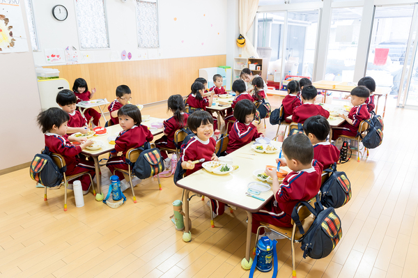 温かい食事をみんなで囲み、「食べることの楽しさ」を感じながら心と体を育てます。