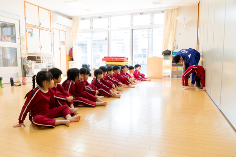 靴をそろえる/自分の荷物を自分で持つ/返事をする──当たり前のことを、毎日の生活の流れの中でていねいに身につけます。